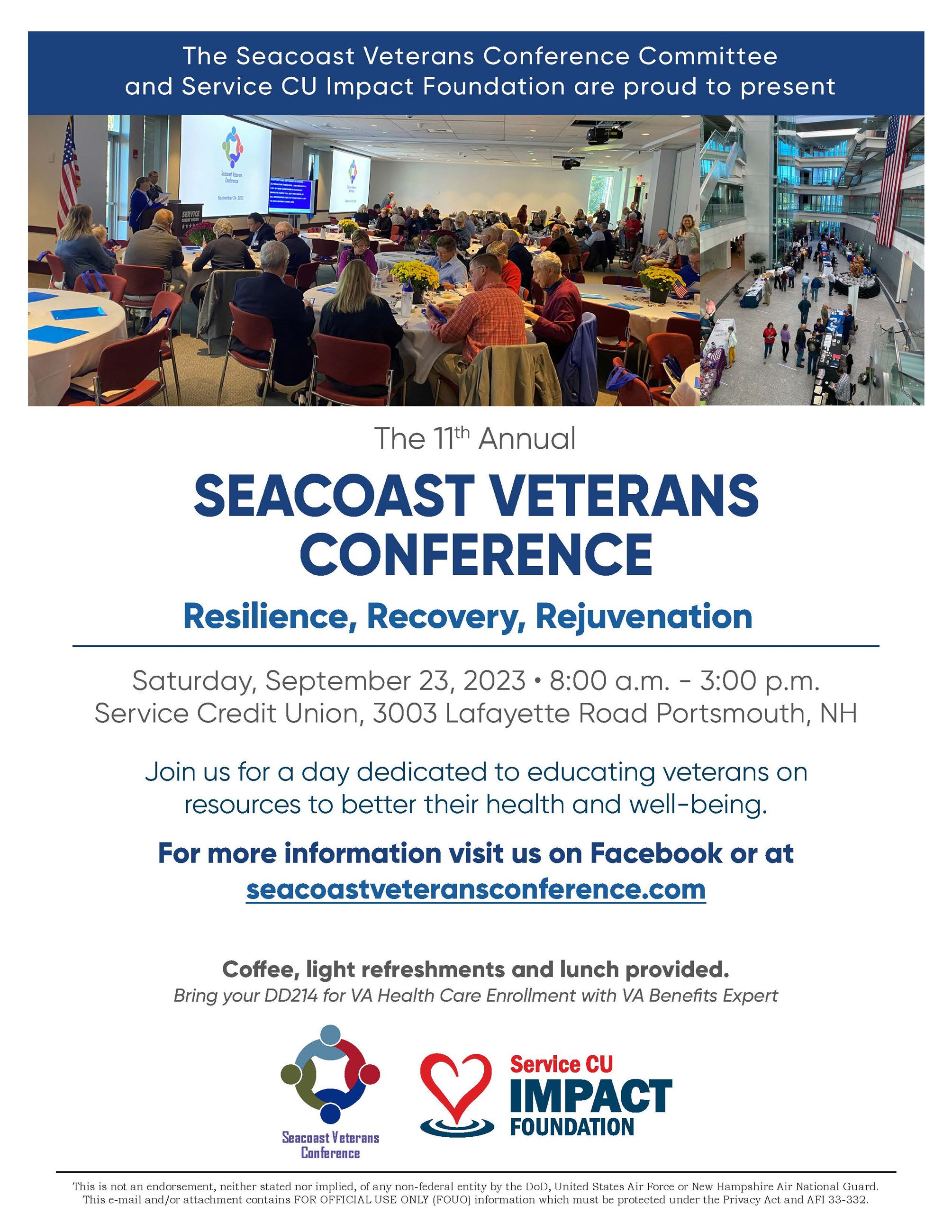 The Service Credit Union Impact Foundation is proud to present the 11th Annual Seacoast Veterans Conference on Saturday, September 23, 2023 at Service Credit Union located at 3003 Lafayette Road Portsmouth, NH.